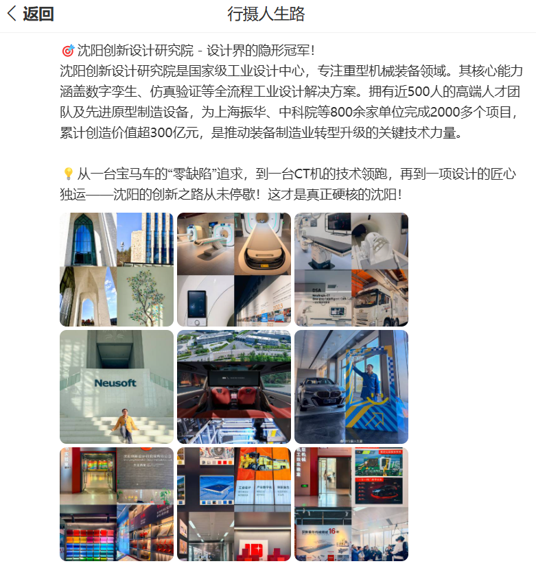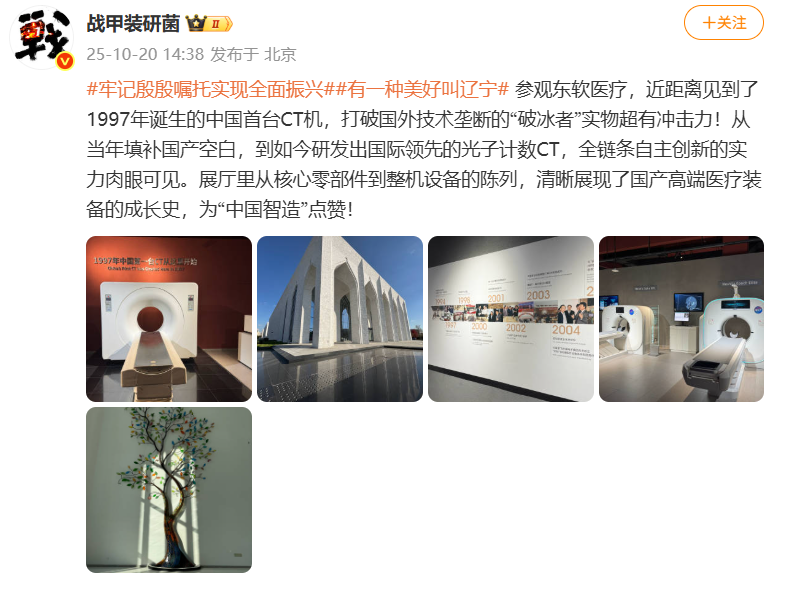 网络名人@行摄人生路表示,“从一台宝马车的‘零缺陷’追求,到一台CT机的技术领跑,再到一项设计的匠心独运——沈阳的创新之路从未停歇!这才是真正硬核的沈阳!”