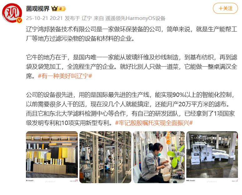 网络名人@菌观视界表示,“公司的设备很先进,用的是国际最先进的生产线,能实现90%以上的智能化控制,以前需要很多人干的活,现在没几个人就能搞定,还能月产20万平方米的滤布。”