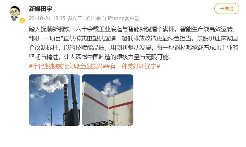 网络名人@新媒田宇表示,“踏入抚顺新钢铁,六十余载工业底蕴与智能新貌撞个满怀。亲眼见证这家国企改制标杆,以科技赋能品质,用创新驱动发展,每一块钢材都承载着东北工业的坚韧与精进,让人深感中国制造的硬核力量与无限可能。”