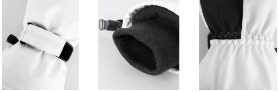 3.细节设计藏玄机。检查滑雪服的领口、袖口处是否为可调节式设计,接缝处是否有全压胶密封,确认产品是否有内置防风裙,以有效防止风雪灌入。优先选亮橙、明黄、荧光绿等鲜艳配色,雪场中易被识别,便于紧急救援。滑雪手套选择合适的尺寸与贴合度:试戴时确保手指能自然弯曲,既不紧绷也不松动,过大易进雪且影响操作,过紧会阻碍血液循环导致手部变冷;腕部建议选择带魔术贴或弹性收口的款式,部分长腕设计可包裹住袖口,进一步防止风雪进入。