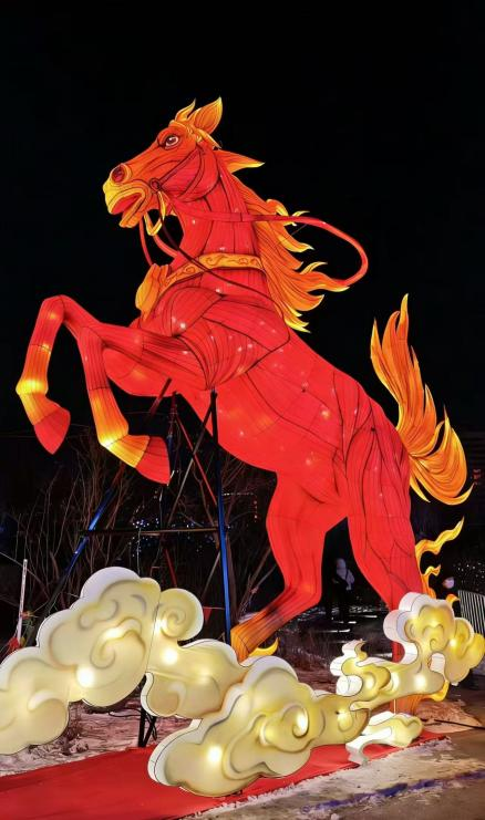 “骐骥”者,古之良骏,马中精英,“骐”为青黑纹彩之俊,“骥”为日行千里之贤。春节期间(初一至初五),如意皇姑碧塘春灯会以一盏盏华灯铺就盛境,而“飞马大秀”便是这场盛宴中最具气韵与锋芒的点睛之笔,以骐骥驰骋之姿,载马年祥瑞之意。驻足观赏,看飞马踏光而行,听文化与新春共鸣,既能感受到灯会的热闹与温情,也能触摸到传统文化的厚重与生命力,更能汲取到马年奋进的力量。