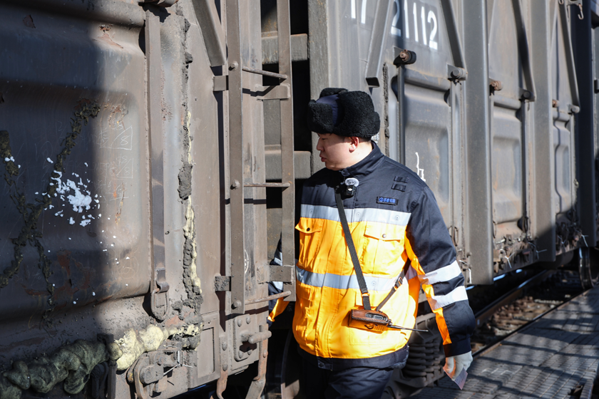张欣峰所在的作业小组主要负责编组列车、站整作业和专用线取送作业。他们常年在室外作业,劳动强度大,对身体素质要求很高。当天气温很低,寒风不断吹到它和工友的脸上、身上。尽管穿着棉衣,一趟作业下来,他们也已全身冻透。