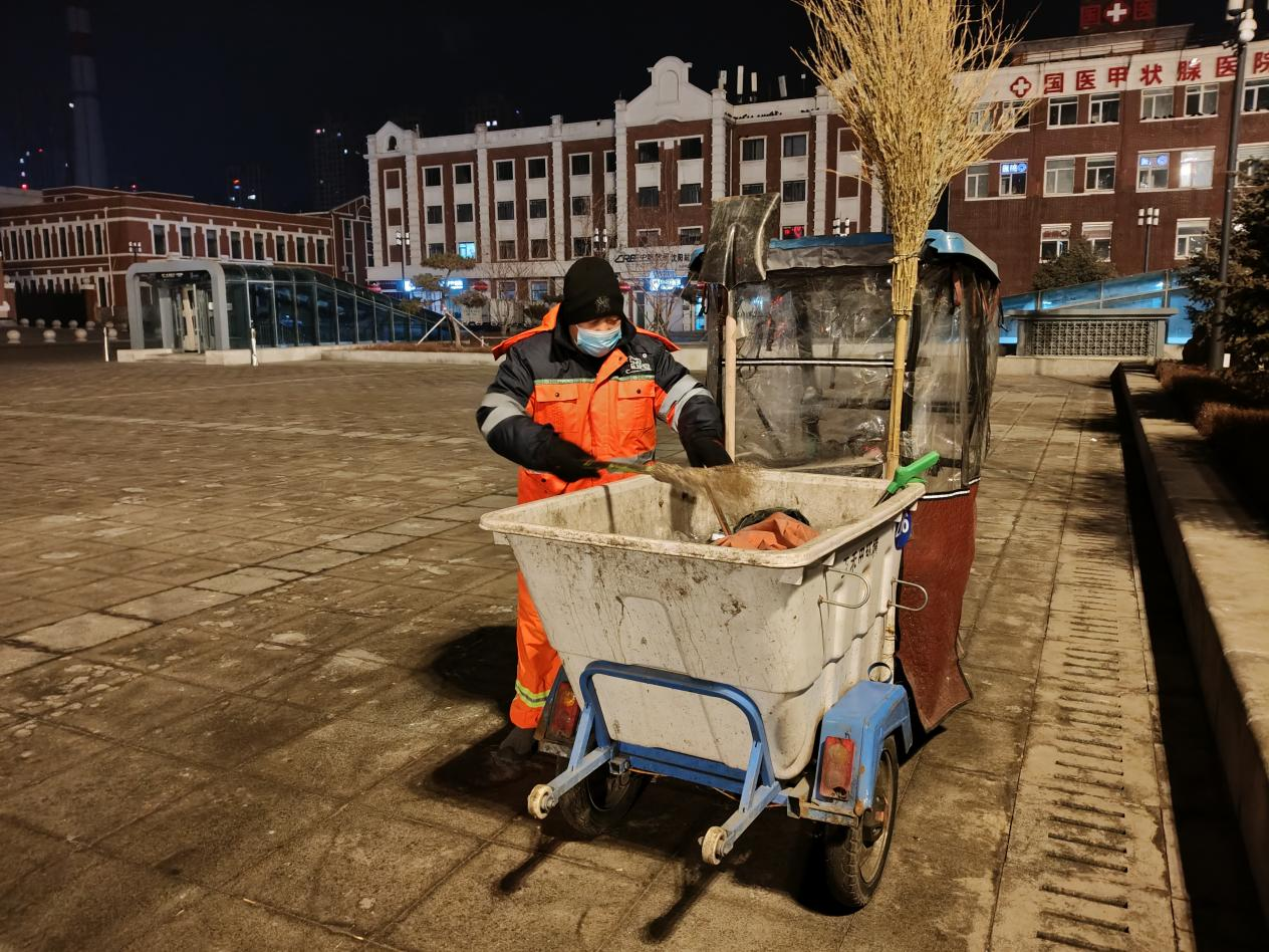 大年初一凌晨4点30分,千家万户还沉浸在新年的梦乡。此时沈阳气温零下11摄氏度,在和平区常德街居民楼下,53岁的环卫工人李春雨戴好帽子手套,骑上环卫作业车,赶往工作岗位——沈阳站东广场。对他而言,这天早上,与平日并无两样。