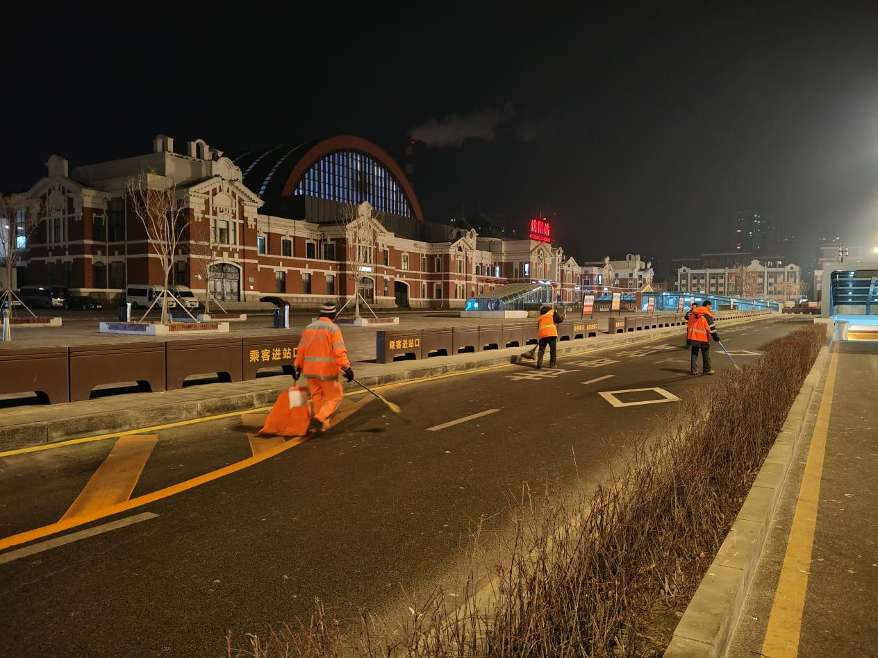 在清扫间隙,记者跟白师傅聊起了日常。“我们最怕遇上雪天,雪停就是命令,一到下雪,凌晨三四点就得提前上岗,再冷再累也要把路清理出来。”白师傅说,在沈阳站东广场工作,除了打扫卫生,他们也常帮旅客做点小事,比如捡到身份证交给民警,当旅客问路时提供耐心指引,“要让外地人都能感受到沈阳人的热情与真诚。”