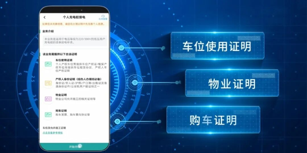 再按照要求上传车位使用证明、物业证明和购车证明,填写基本用电需求,即可提交申请,无需前往营业厅。