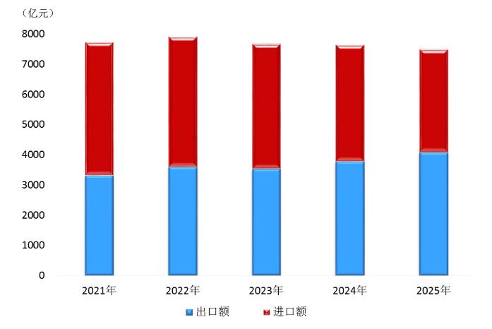 图3 2021-2025年货物进出口总额