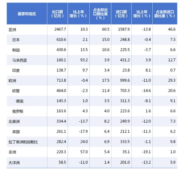 表2 2025年对主要国家和地区货物出口情况