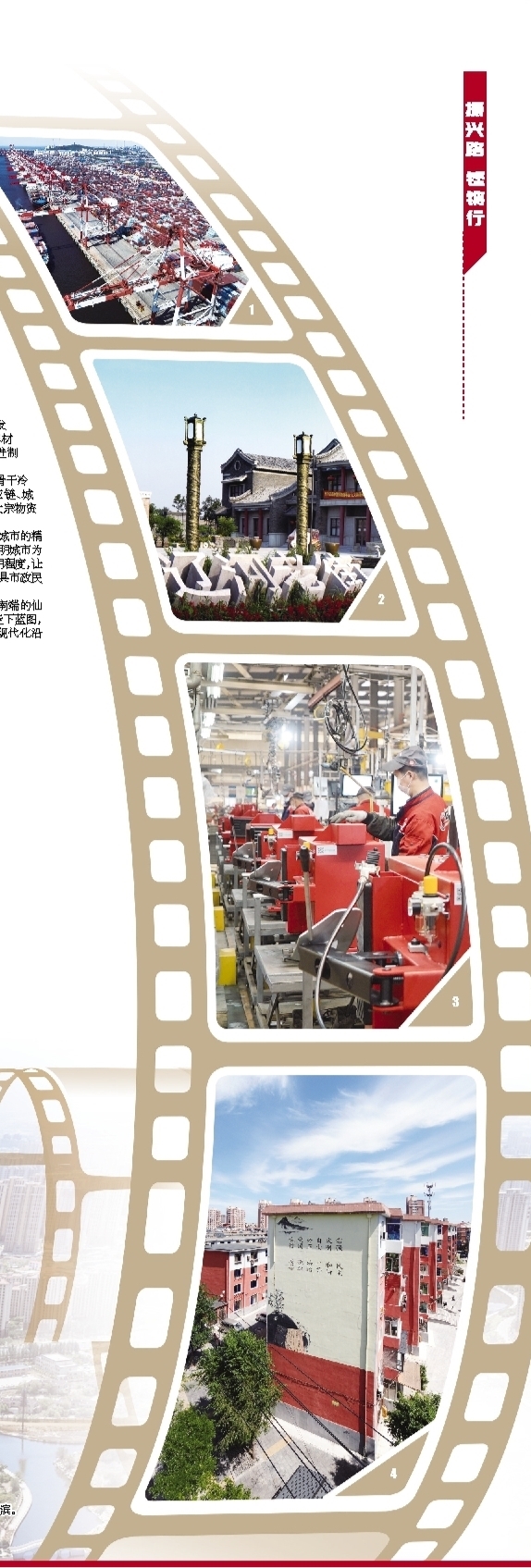 1.营口港集装箱码头。 2.建设辽河文化产业带,传承百年的辽河老街焕发新活力。 3.汽保产业是营口市三大特色产业之一,图为科维(营口)工业有限公司工人在生产线上加紧生产。 4. 改造后的五大门小区焕然一新。 本版图片由营口市委宣传部提供