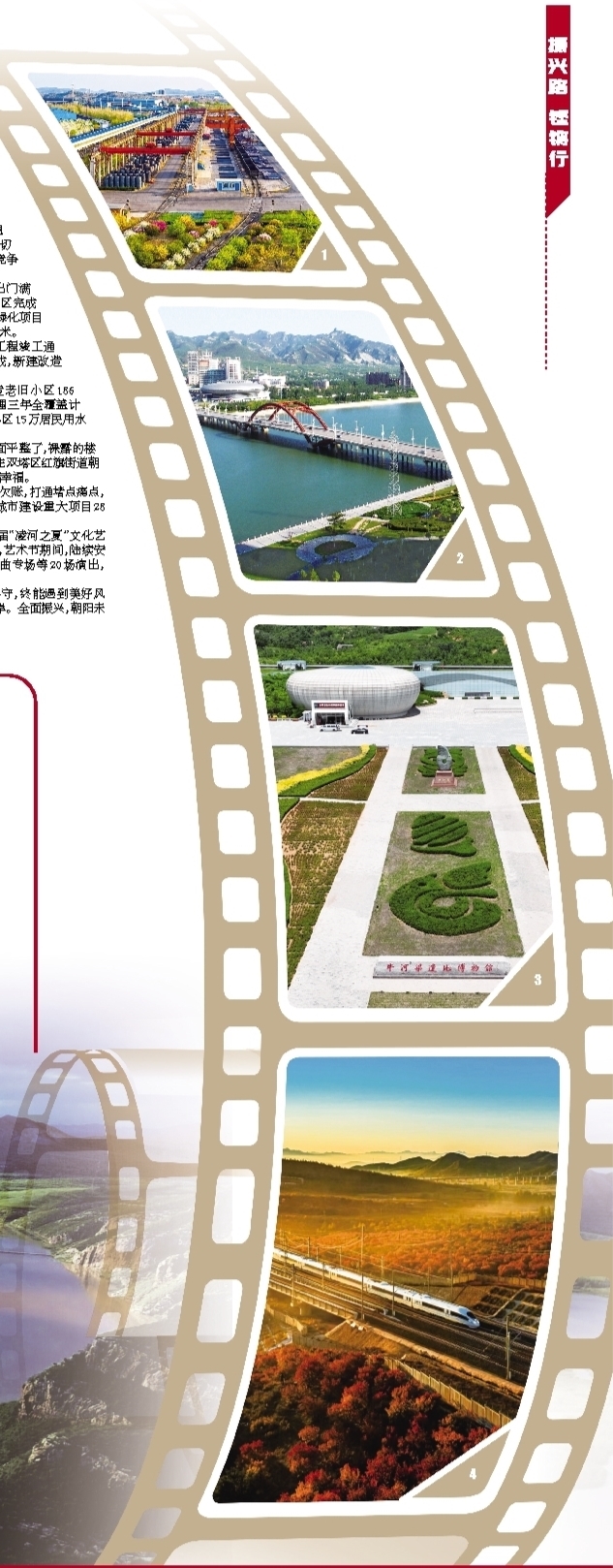 1.凌源钢铁集团有限责任公司花园式厂区美景如画。 2.伴随着城市更新改造的步伐,朝阳正在成为一座生态宜居美丽新城。 3.牛河梁遗址博物馆。 4. 3条高铁相继通车,朝阳进入高铁时代。 本版图片除署名外由朝阳市委宣传部提供