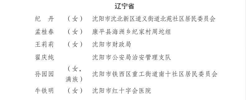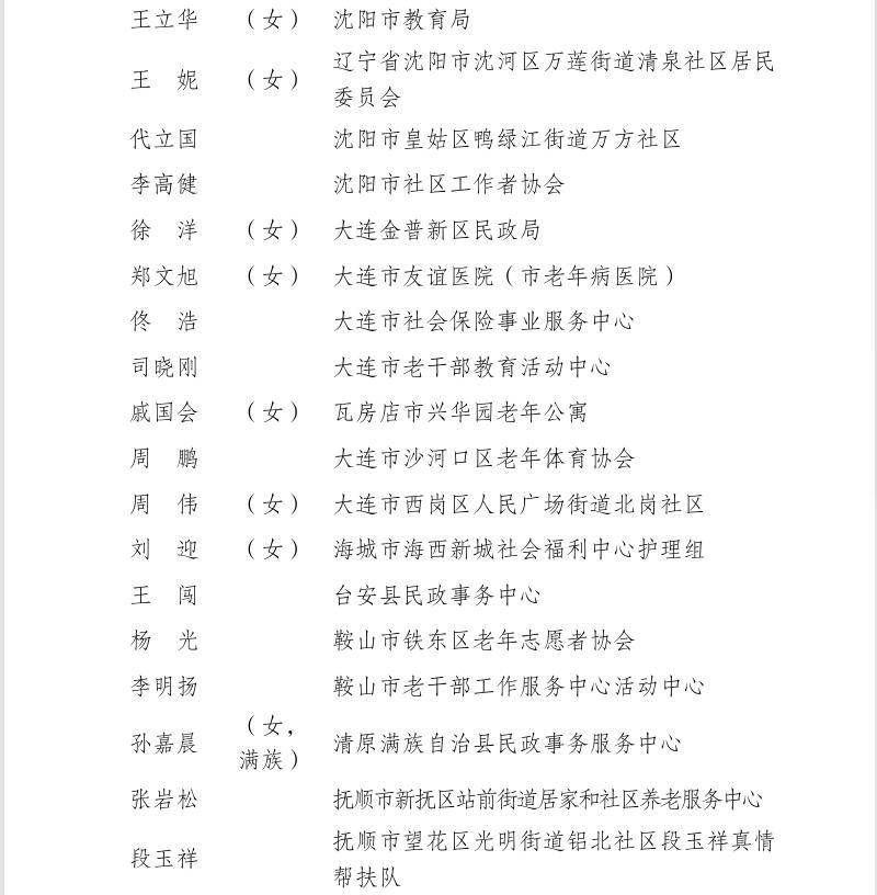 全国“敬老爱老助老模范人物”名单