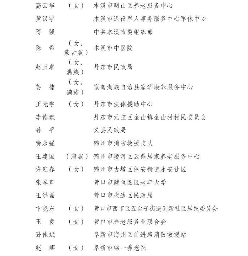 日前,全国老龄工作委员会办公室发布《关于表彰全国“敬老文明号”和全国“敬老爱老助老模范人物”的决定》,授予北京市东城区东直门街道市民活动中心(党群活动中心)等1290个集体全国“敬老文明号”称号、授予高翔等1990名个人全国“敬老爱老助老模范人物”称号,其中,辽宁48个集体、73名个人获表彰!