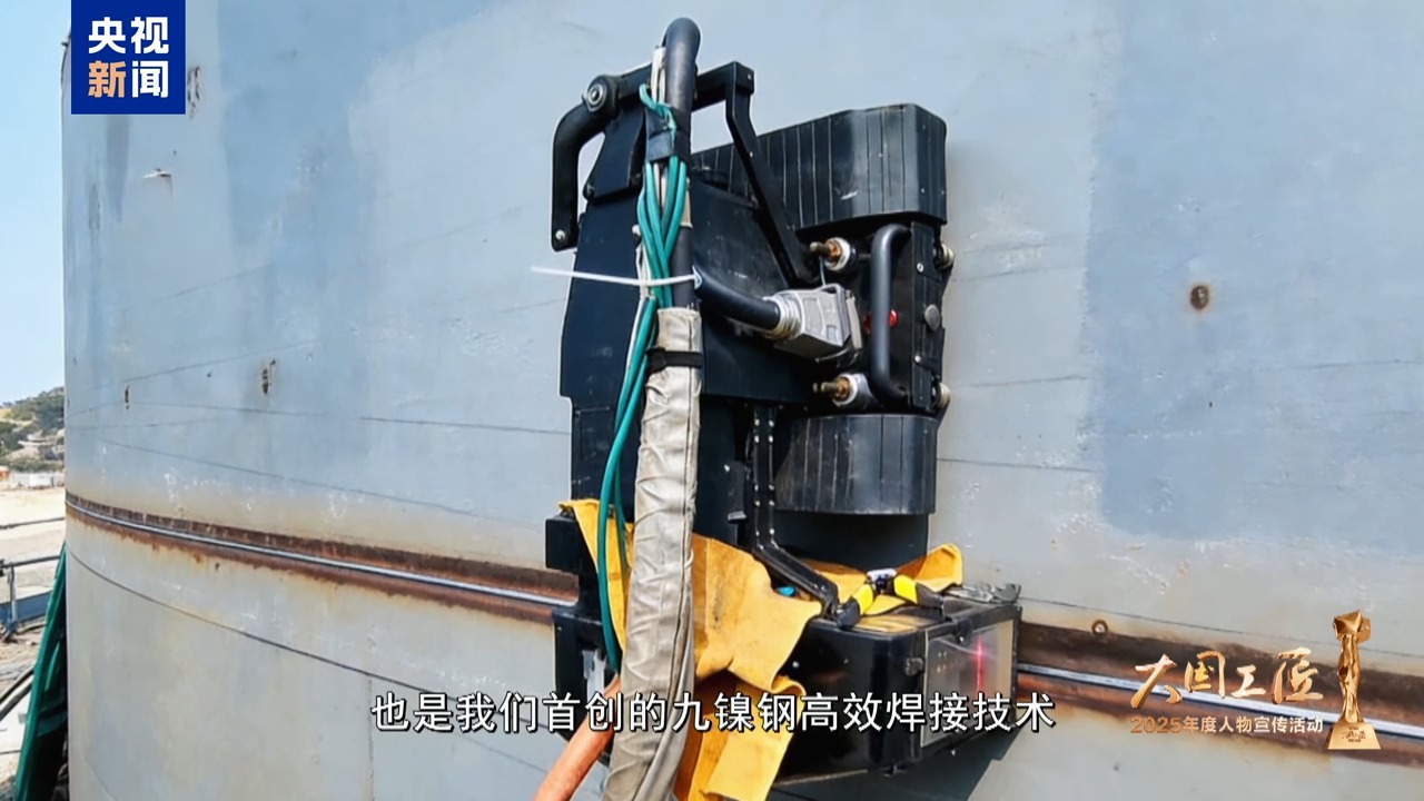 朱先波:30多年来,我带的徒弟也记不清了,可能有几千人。现在我带了一个特殊的徒弟,它叫无轨导爬行高效机器人。我们利用它攻克了世界上,也是我们首创的九镍钢高效焊接技术。效率可以提升8倍,一台机器人相当于8名高水平的焊工。创造出我们更大的价值。