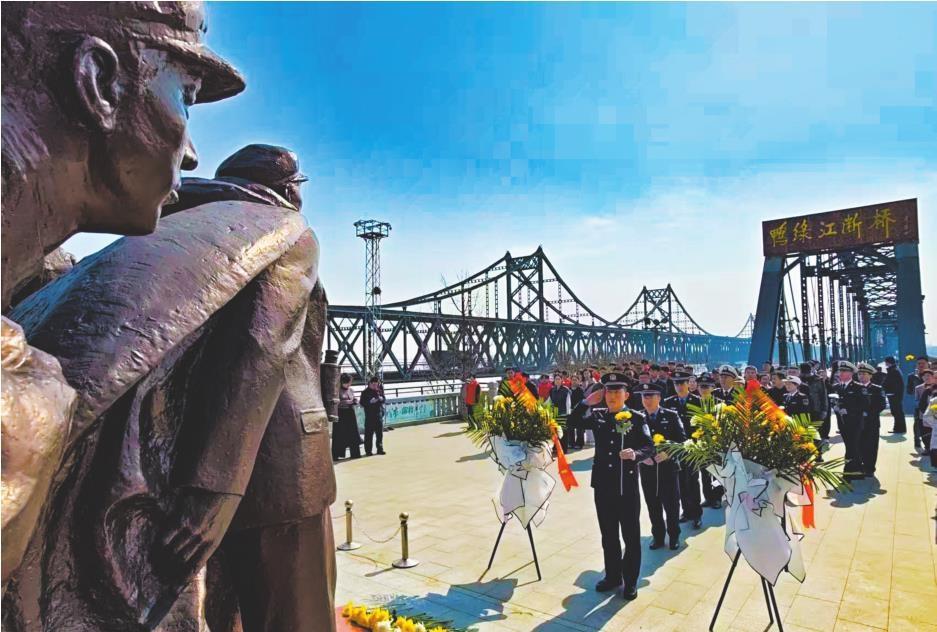 清明节前夕,丹东举办“缅怀抗美援朝英烈 传承红色奋进精神”主题活动,当地各界人士以庄重仪式缅怀革命先烈。 特约记者 周广庆 摄