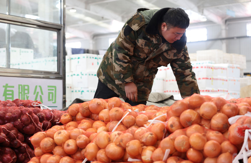 春节将至,位于辽宁省盘锦市的东北新发地农产品供应链中心蔬果吞吐量迎来高峰,来自南方的蔬菜水果在这里进入东北地区市场,东北地区的特产从这里发往全国各地,南北年货的相遇让春节的年味更加浓郁。