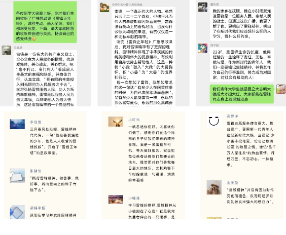 同学们学雷锋要找到那种让人充实快乐幸福的高贵情感,用脚步丈量祖国大地,用眼睛发现中国的精神,用耳朵倾听人民呼声,用内心感应时代脉搏,坚定不移听党话,跟党走,让青春在全面建设社会主义现代化国家的火热实践中美丽绽放。