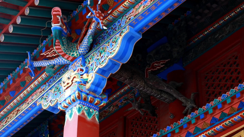 在有近400年历史的沈阳故宫里,“龙”的元素随处可见,特别是建筑上的“龙”,如大政殿的金龙盘柱、格扇门上镂空雕刻的浑金团龙,崇政殿上的龙形抱头梁和五彩琉璃墀头,都代表了清早期的龙形生动健硕的典型特征。
