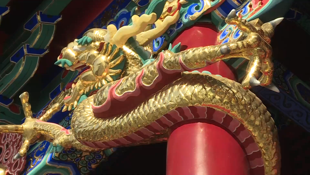崇政殿里的龙形抱头梁既有承重作用,又起到装饰作用。专家表示:沈阳故宫建筑上的龙纹饰,在突显装饰性的同时,也非常重视和建筑本身实用性相结合。