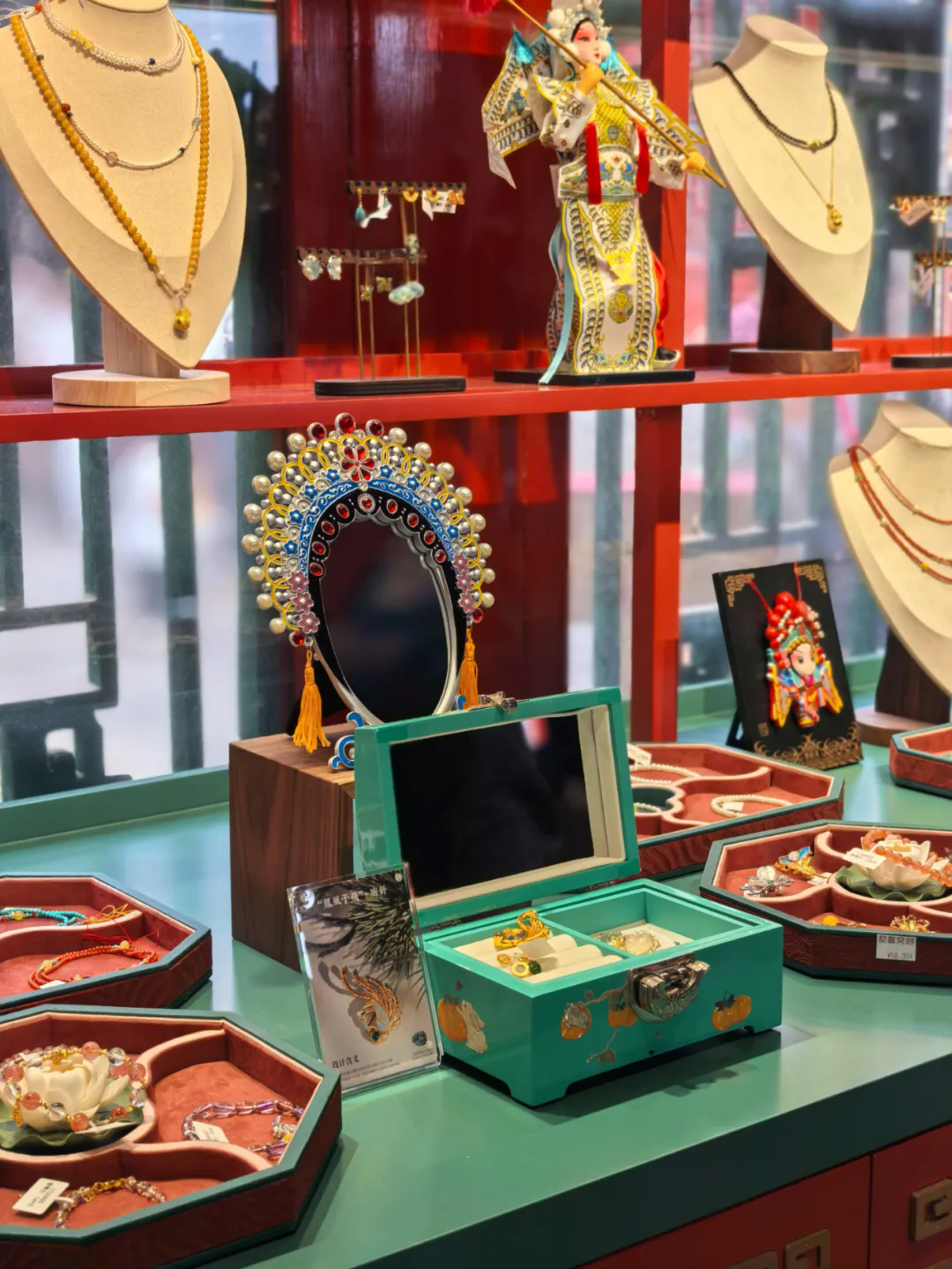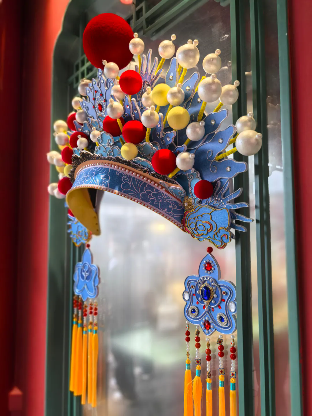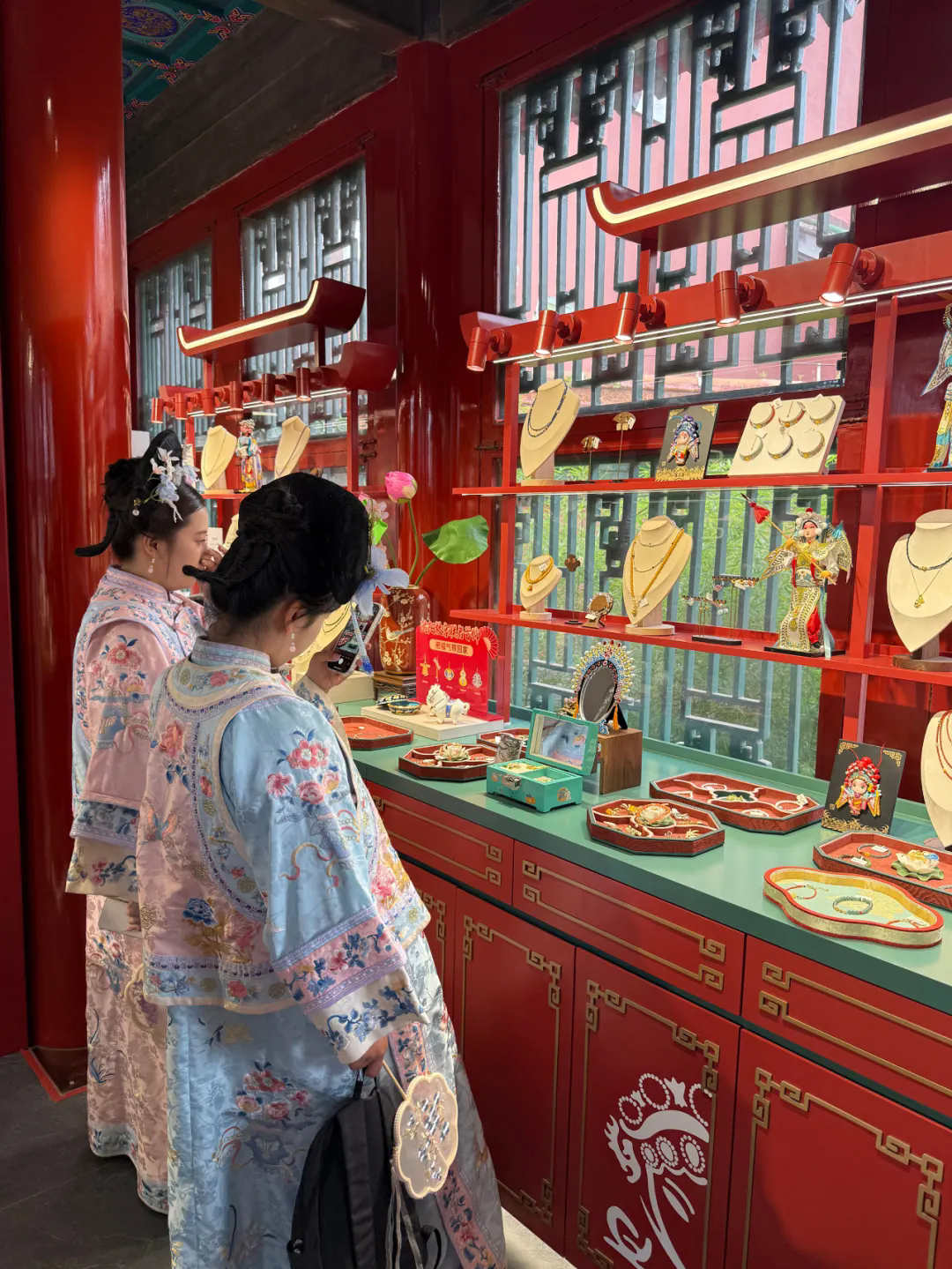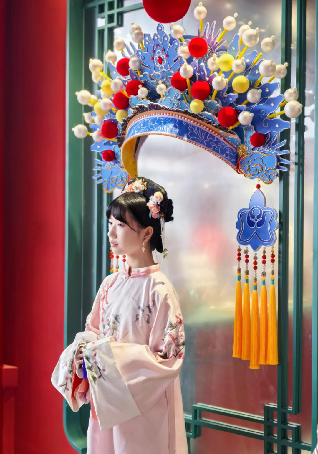 入口处,通过窗棂上精心设计的京剧头面,构建出可互动可打卡的“拍照空间”,游客穿行其间,恍若踏入清宫戏苑。