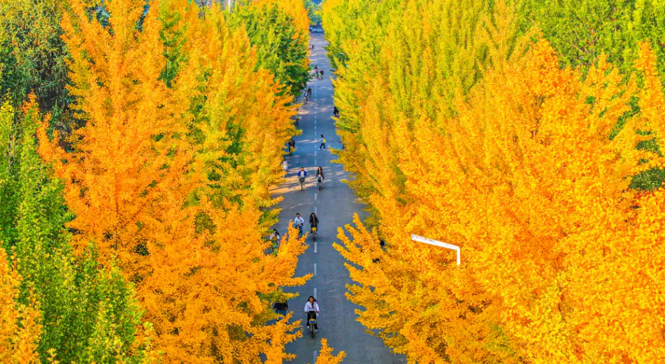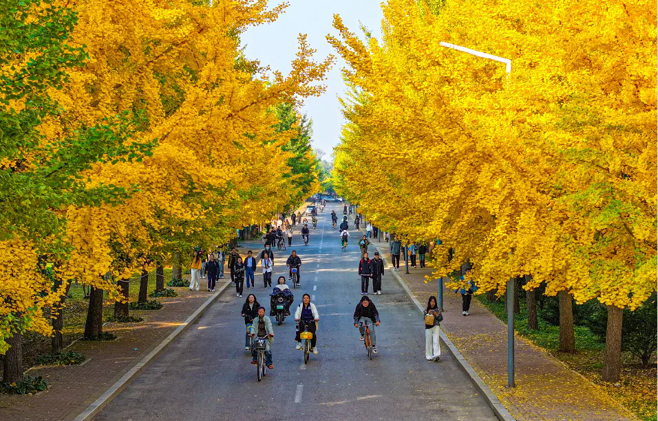 校园银杏观赏季期间