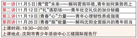 作为团市委服务青年的重要抓手和平台,“沈青夜校”从青年实际需求出发,不断丰富学习内容,打造精品课程。10月29日,记者从团市委获悉,11月起,“沈青夜校”将于每周三晚间推出全新课程,精选经济发展、营商环境、社交礼仪、心理健康等青年最关心的课题,帮助青年收获知识,提升技能。