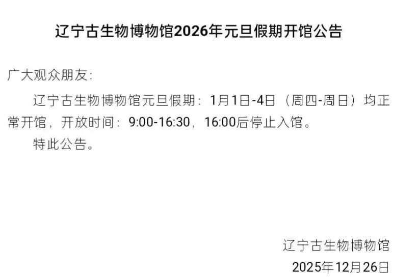 1月1日—1月3日,沈阳故宫博物院(沈阳市沈河区沈阳路171号)、沈阳故宫文化博物馆(沈阳市沈河区朝阳街131号)正常开放。