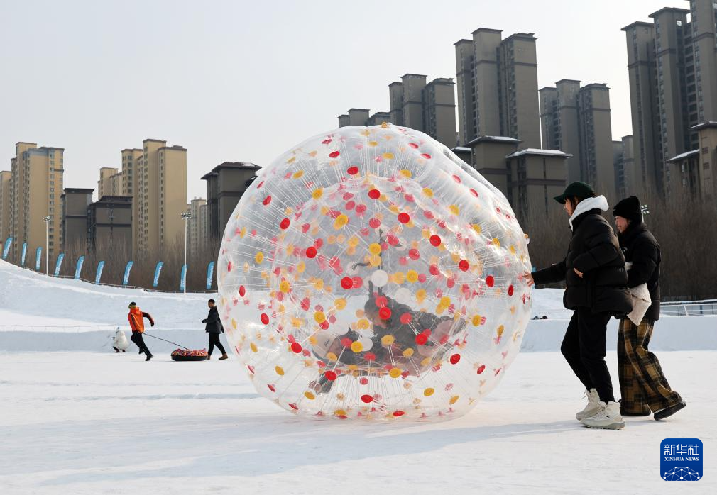 1月9日,游客在沈阳市一家温泉度假酒店体验雪上趣味项目。新华社记者 潘昱龙 摄