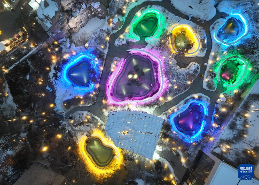 1月9日,游客在沈阳市一家温泉度假酒店体验室外温泉浴(无人机照片)。新华社记者 潘昱龙 摄