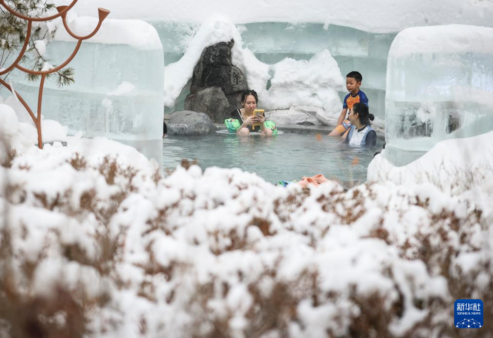 1月9日,游客在沈阳市一家温泉度假酒店体验室外温泉浴。新华社记者 潘昱龙 摄