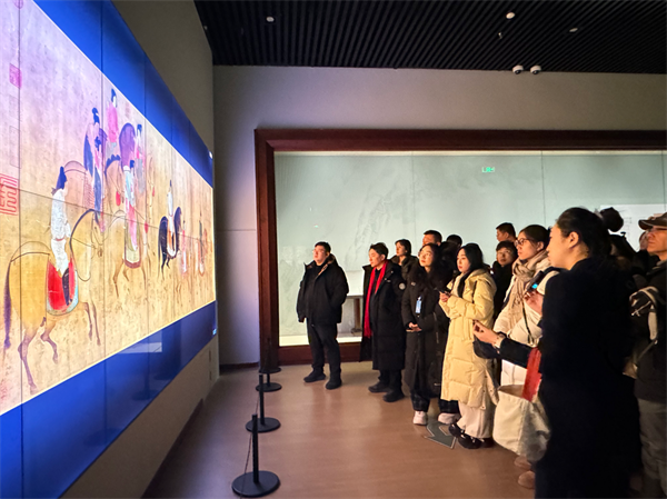 随后,参访团成员在辽宁省博物馆开启了一场跨越千年的文明对话。馆内《诗画中国——中国绘画的诗意之境》年度特展汇聚了历代书画珍品,尤其是宋摹张萱《虢国夫人游春图》,其生动的笔触、鲜活的构图,展现了绘画艺术的高超水准。