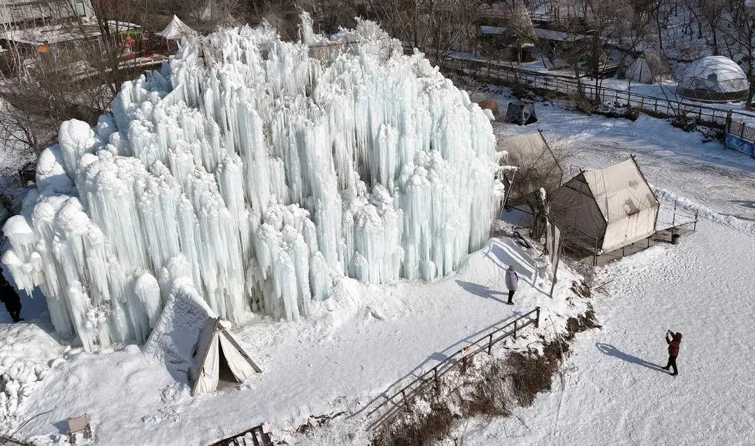沈阳天柱山水岸郊野公园内,晶莹剔透的冰瀑在阳光的映照下熠熠生辉,宛如冰雪雕琢的艺术品,将冬日的静谧与壮美展现得淋漓尽致。