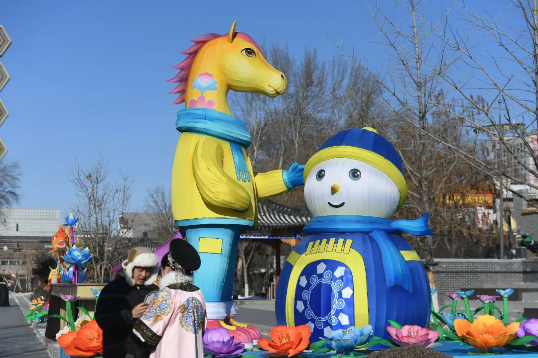漫步至沈阳故宫红墙下,马形象彩灯映着朱墙黛瓦,传统韵味与新年期许交融,在光影流转间,诉说着沈阳的古今风华。