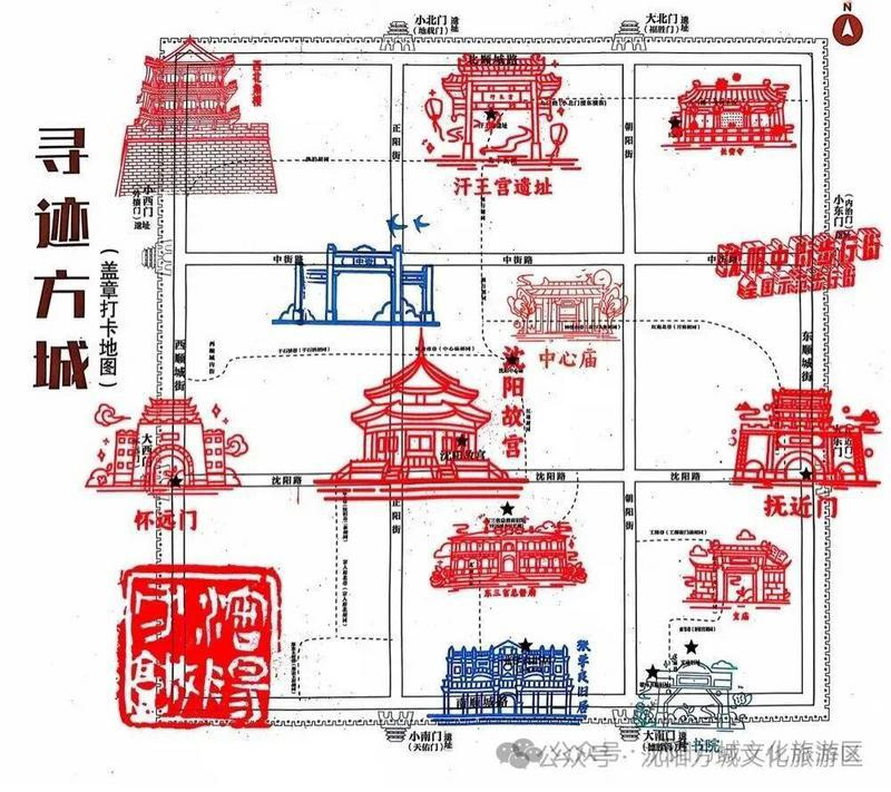 为方便市民及游客集章,方城明确了“集章规则”,让大家轻松解锁双重惊喜。其中,马年限度纪念印章可“关注即领”,您只需关注“沈阳方城文化旅游区”抖音、视频号等6大官方自媒体账户中的任意3个,出示关注页面即可免费加盖全套新章。14款经典地图章则全程免费无门槛,市民游客到场即可免费领取“寻迹方城地图”,在地图上加盖印章,每人限盖一套;若任消满15元,还可将地图印章盖在个人打卡本上,留存专属纪念。据悉,经典地图章涵盖方城内沈阳故宫、汗王宫遗址、抚近门等14处核心地标,是记录盛京足迹、感受方城韵味的最佳载体。