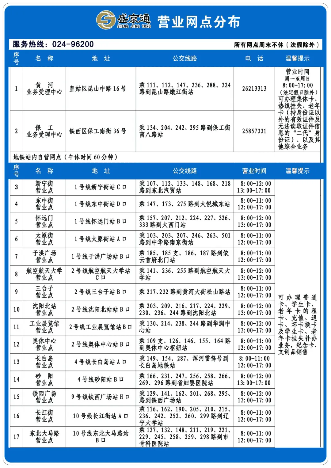 方便市民就近办理盛京通卡业务