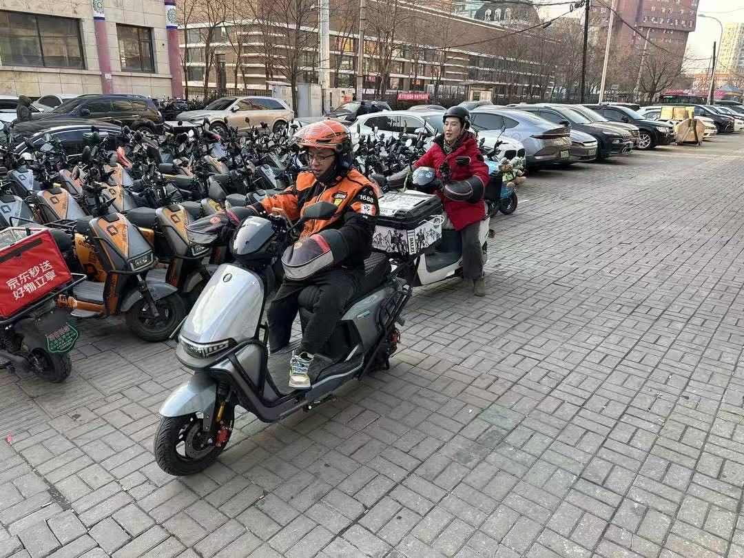 当天大连气温在-6℃左右,虽然穿着厚羽绒服、棉鞋、棉裤,但一个多小时下来,记者在电动车上早就冻透了。看到送单效率因自己跟着采访受到影响,记者提出先回驿站,剩下的两单由胡云平独自去送。