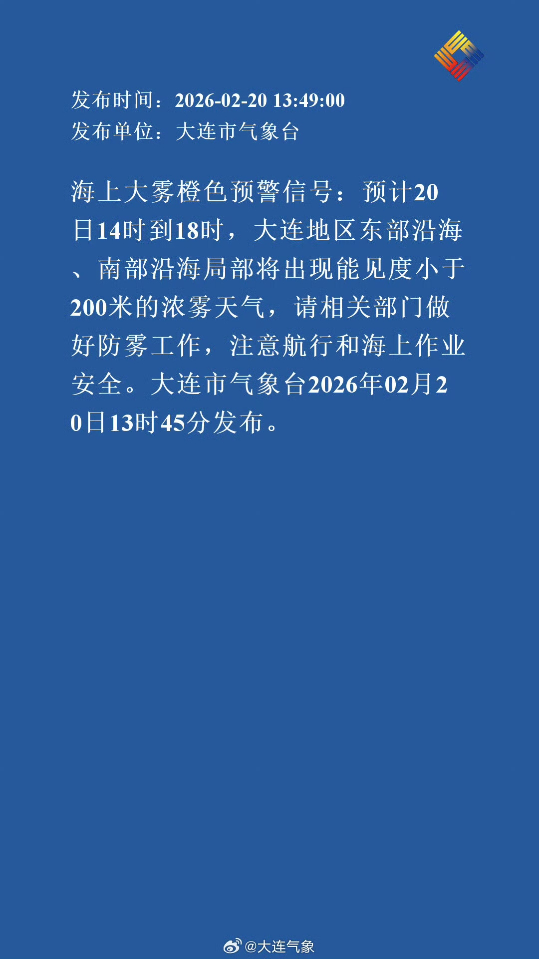 大连市气象台发布