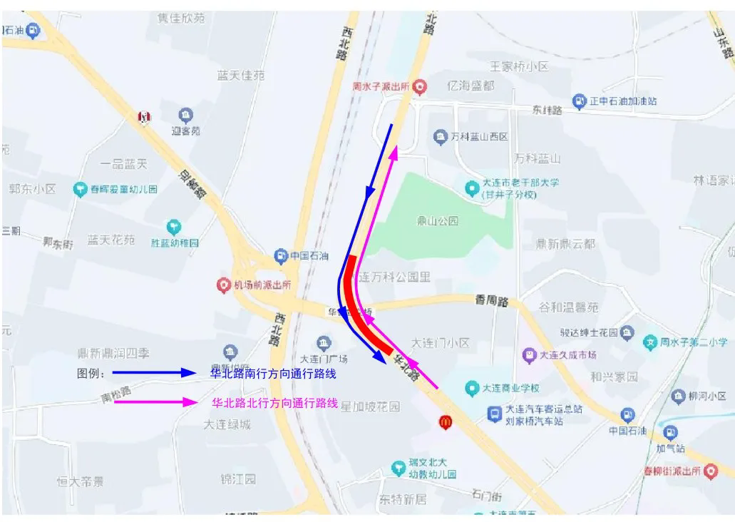 因甘井子区华香立交桥(华北路跨香周路、迎客路高架桥)桥面维修工程需要,根据《中华人民共和国道路交通安全法》规定,拟于2026年4月16日0时至5月30日24时,对华香立交桥实施全封闭管理措施。