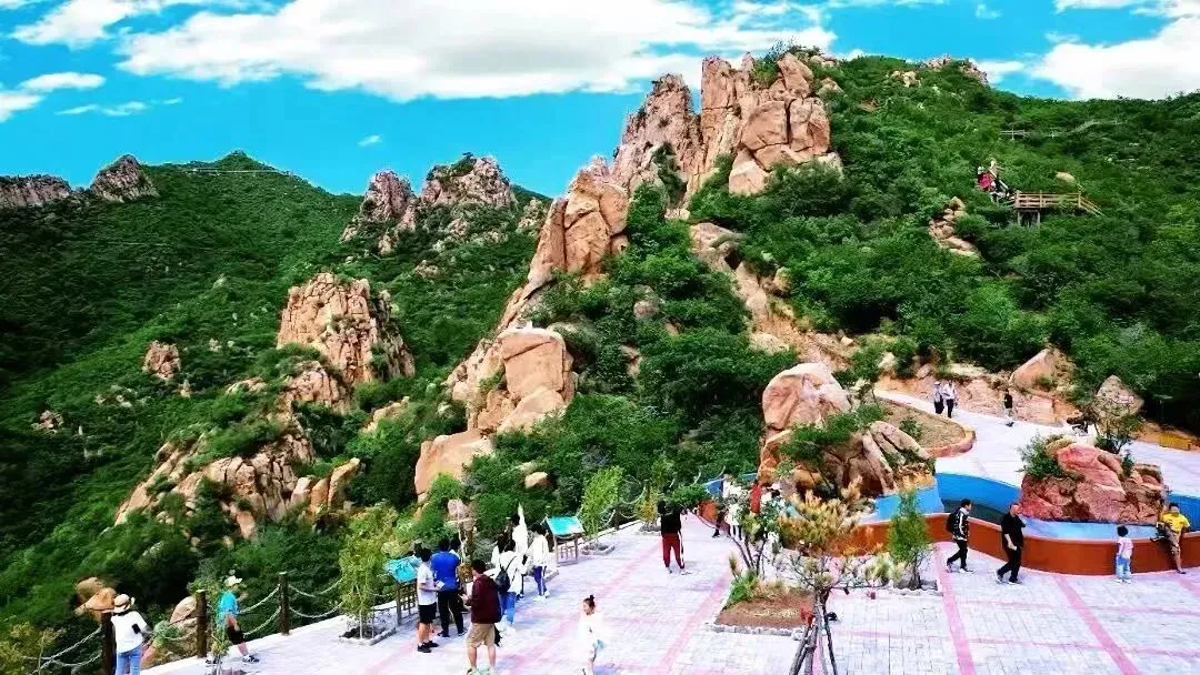 朝阳县清风岭景区天高云淡,给登山游客献上“翠壑丹崖千丈画,白云红叶一溪诗”的秋季胜景;