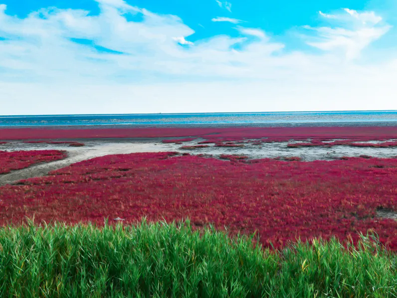 上午,前往辽宁团山国家级海洋公园,观赏红海滩与18亿年海蚀地貌;