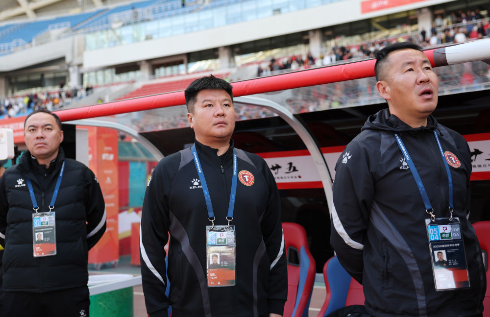 5月4日,辽宁铁人队主教练李金羽(中)在比赛前。当日,在沈阳举行的2025中国足球甲级联赛第七轮比赛中,辽宁铁人队主场2比1战胜陕西联合队。新华社记者李钢 摄