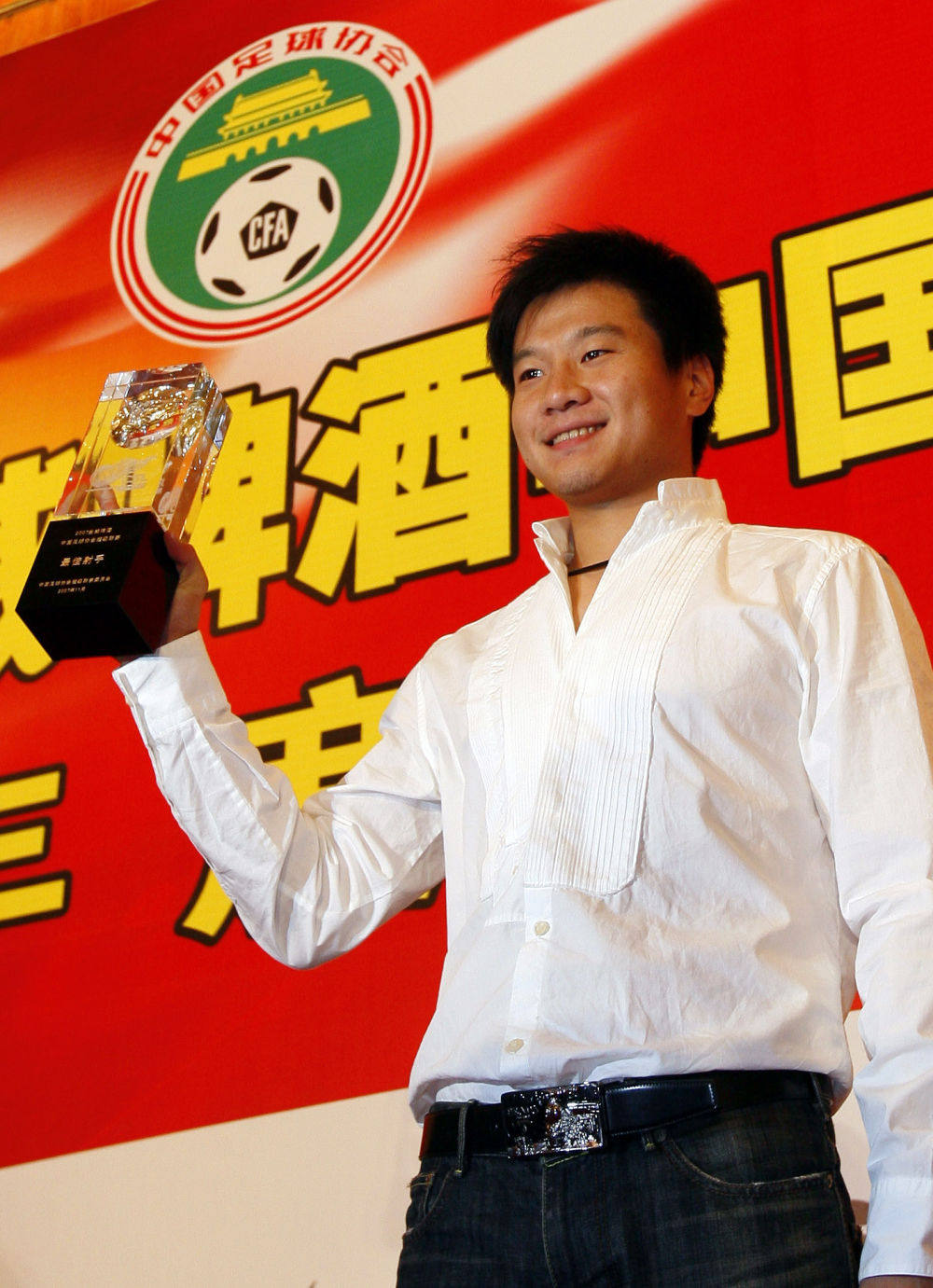 2007年11月17日,山东鲁能队球员李金羽在颁奖典礼上。当日,中国足球协会在上海举行中超联赛颁奖典礼,李金羽荣获2007年中国足球超级联赛“最佳射手”称号。新华社记者凡军 摄