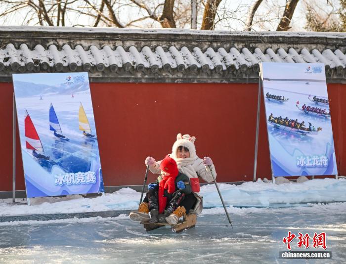 带着孩子体验划“单腿驴”冰车的市民李林表示,“我们小时候的游戏,现在成了全家一起玩的项目。”