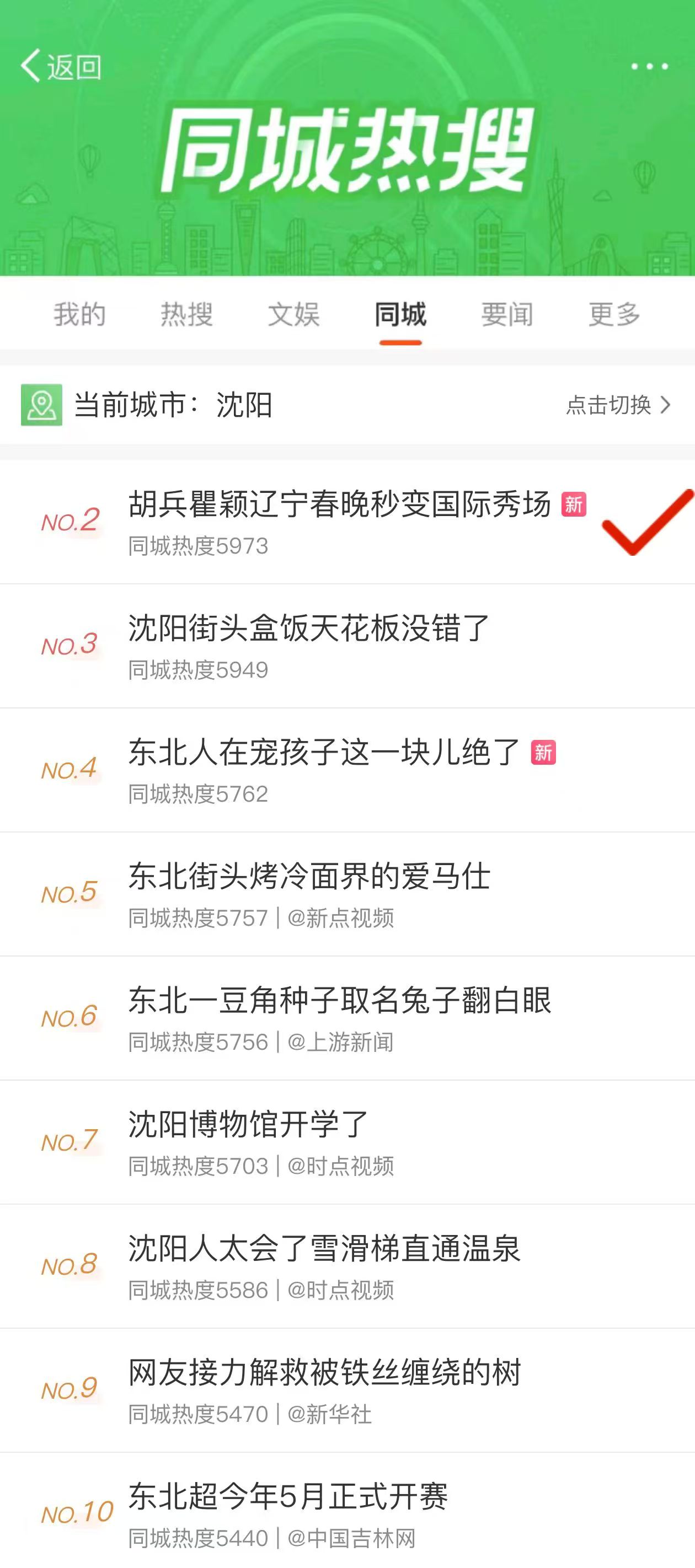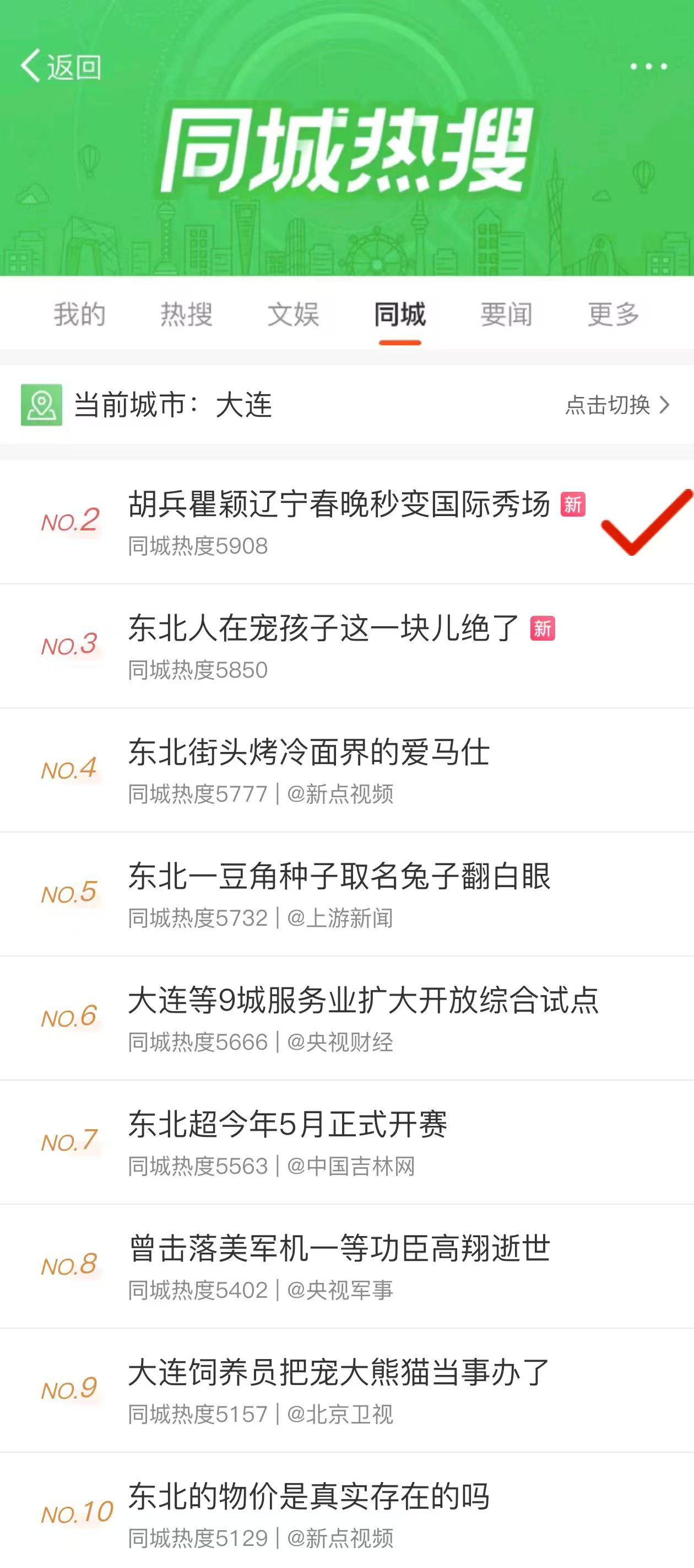 这个话题还上了沈阳、大连同城热搜