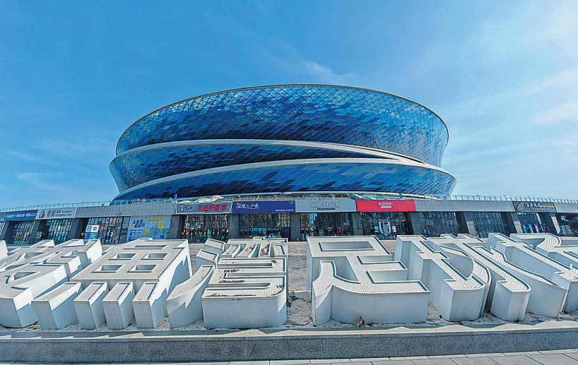 梭鱼湾足球场焕然一新,迎接国内外球迷前来观赛。大连新闻传媒集团/大连云记者王华 摄