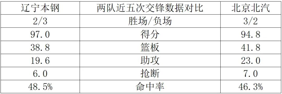两队近五次交锋数据对比: