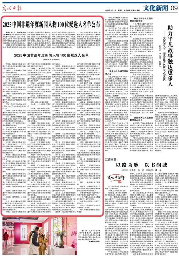 近日,由文化和旅游部非物质文化遗产司业务指导,光明日报社、光明网主办的2025中国非遗年度新闻人物推选宣传活动正式确定100位候选人名单,并向社会公示。