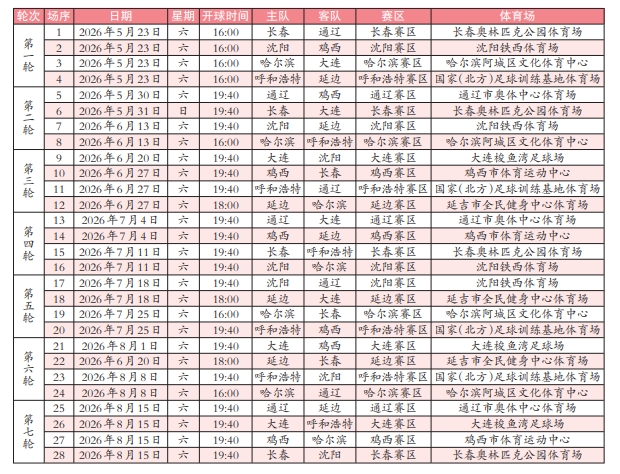 2026年东北地区城市足球联赛常规赛赛程
