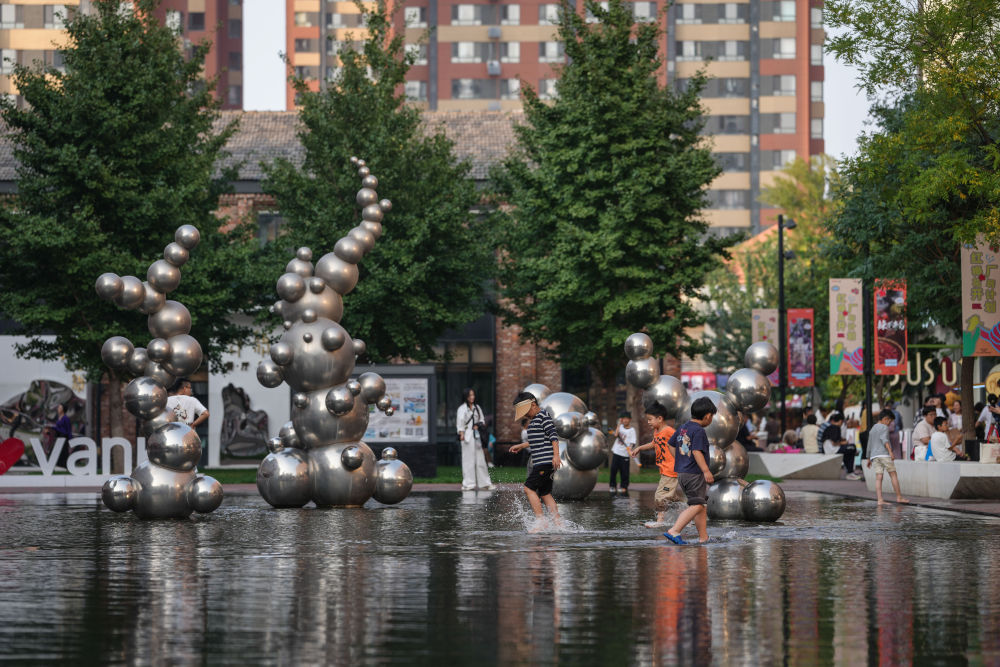 2025年10月1日,小朋友在沈阳红梅文创园游玩。