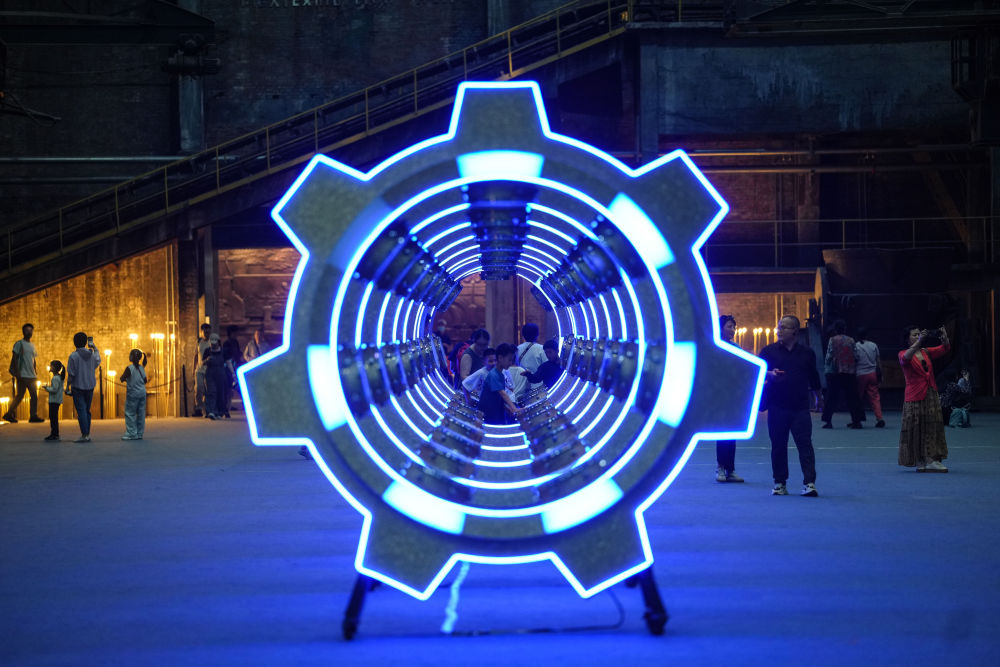 2025年4月4日,游客在辽宁朝阳市1958科学乐园体验时空隧道。1958科学乐园由朝阳水泵厂老厂房改造而成,以建设“工业文明记忆 智慧城市客厅”为目标打造,赋予老厂区新内容、新内涵。