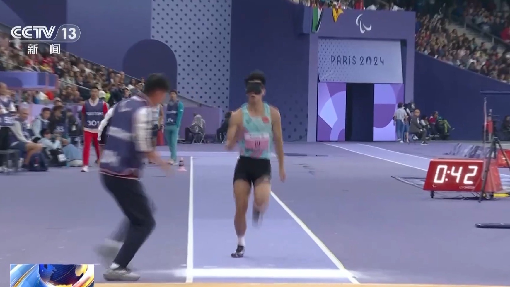 引导员廉佳庚:他的频率比较快,然后我非常注意配合他,不能因为我影响他,比如说跑200米、400米带弯道的,我会提前跟他说,还有快到终点时候,我会喊一声,他就压线。