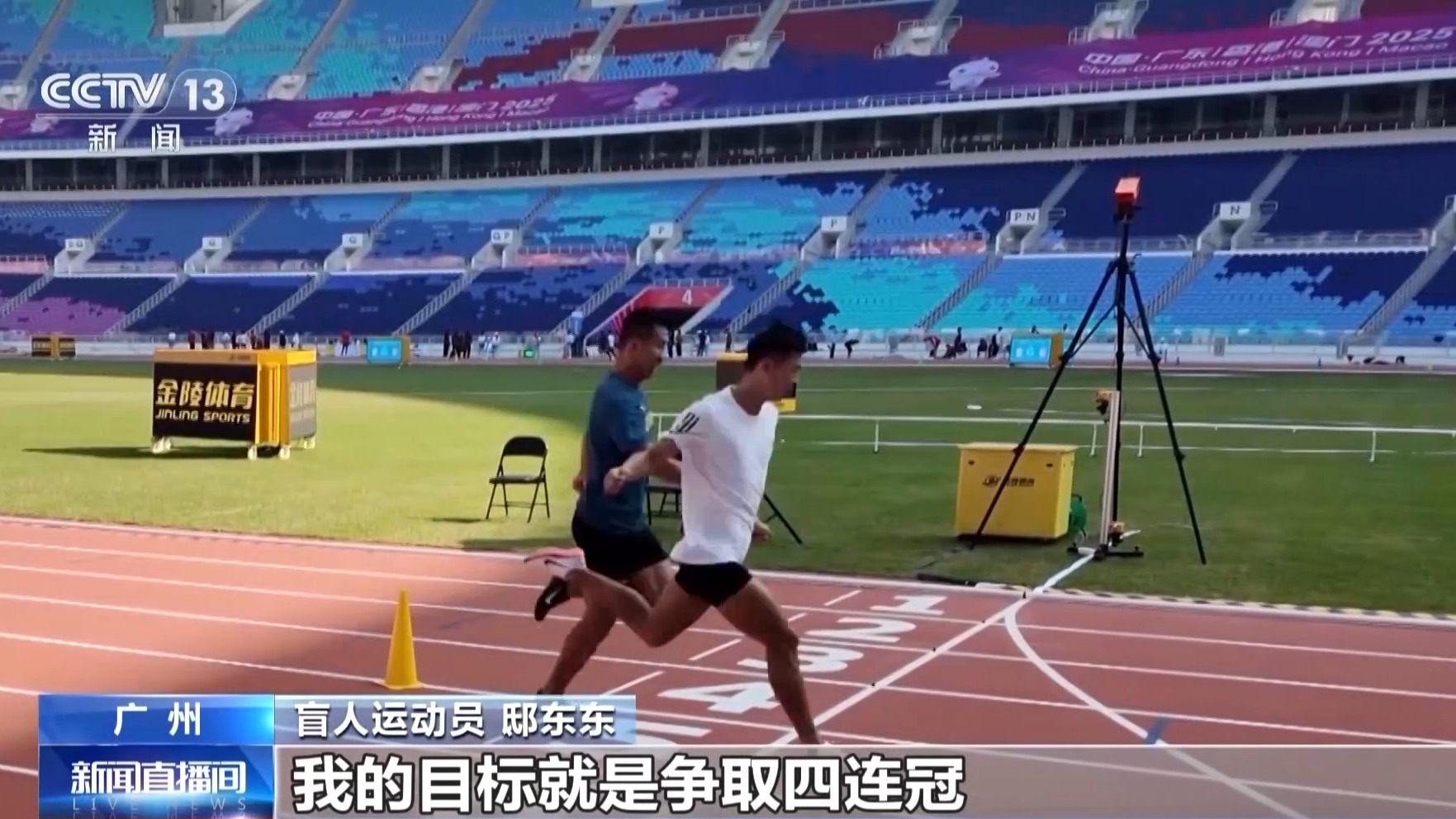盲人运动员 邸东东:我把百米的目标设在破11秒,现在全国纪录是11秒03,是我自己的,我的目标是争取四连冠,有点难度。